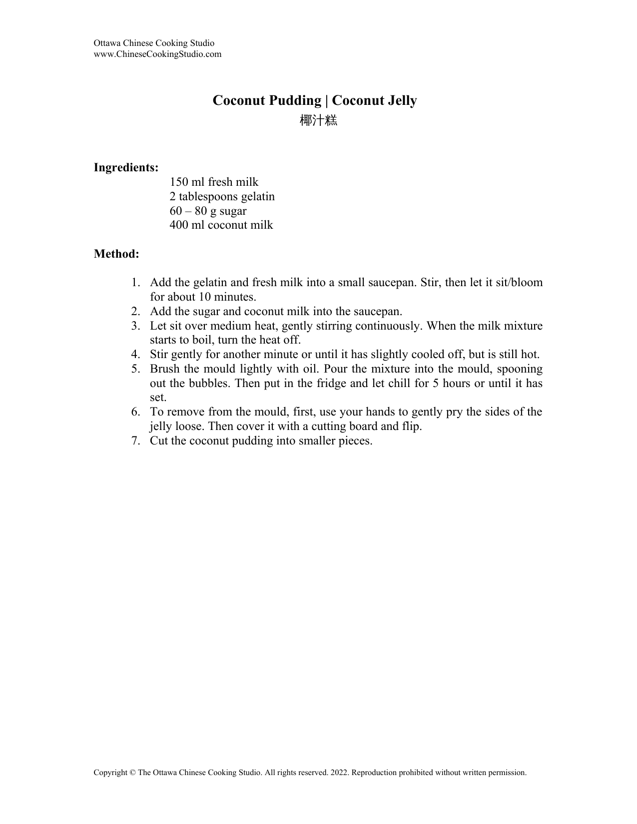 Coconut Pudding | Coconut Jelly 椰汁糕